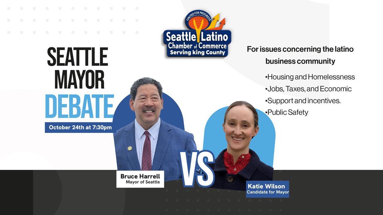 Seattle, WA – Octubre de 2025 — La Cámara de Comercio Latina de Seattle llevó a cabo el Debate Latino por la Alcaldía de Seattle 2025, con la participación de los candidatos Katie Wilson y el actual alcalde Bruce Harrell. El foro, moderado por el presidente y fundador de la Cámara, Marcos Wanless, ofreció una plataforma para que ambos candidatos compartieran su visión y propuestas en temas que afectan a los negocios latinos y a la comunidad hispana en la ciudad.